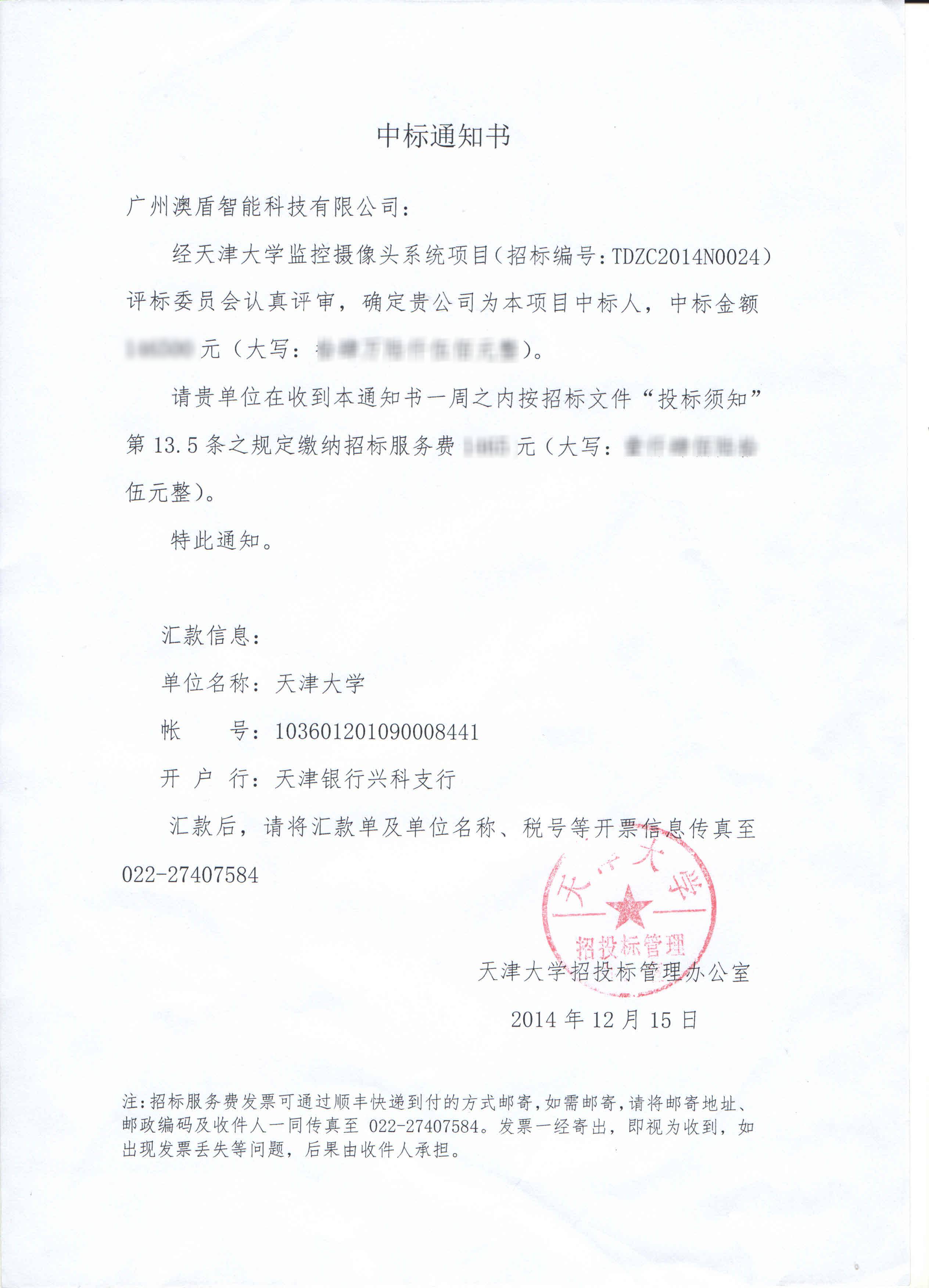 天津大學(xué)監(jiān)控攝像頭系統(tǒng)項目成功中標(biāo)公告2016-03-22 15:02:05
